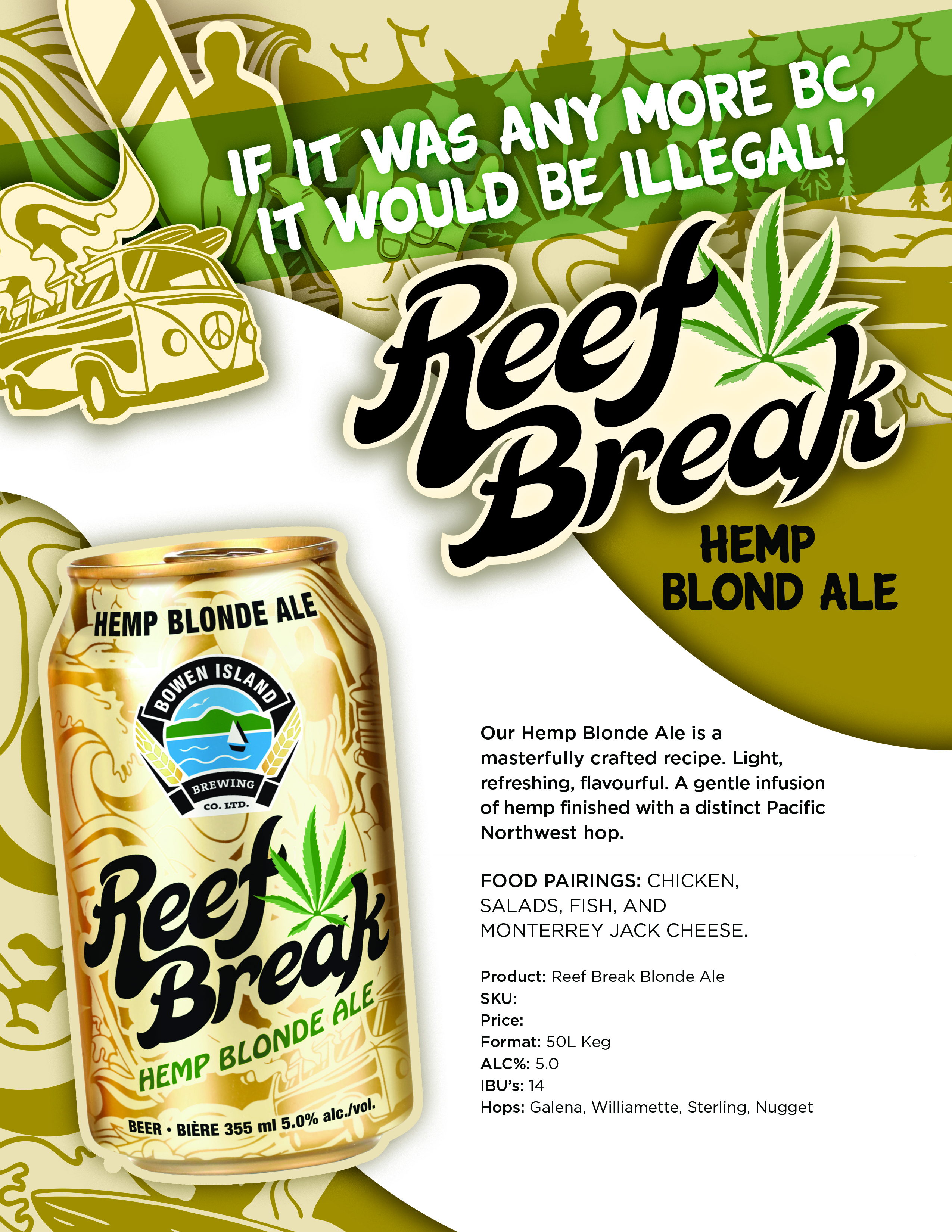 Reef Break Blond Ale sell sheet for use in bars and restaurants.