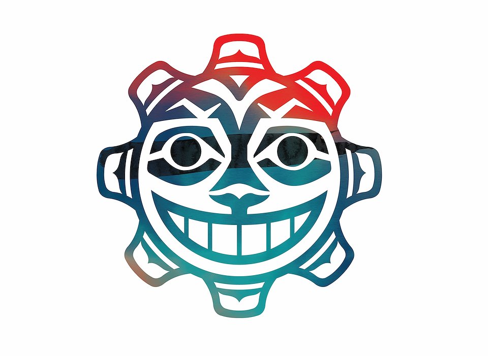 I researched Native American symbolism to come up with the character icon, and ended up blending the sun and moon symbols into one entity. Instead of the usual stoic facial expressions on Native American artwork, I’ve given this character a sh*t-eating grin that would be equally appropriate on a blissed-out Cheshire Cat.